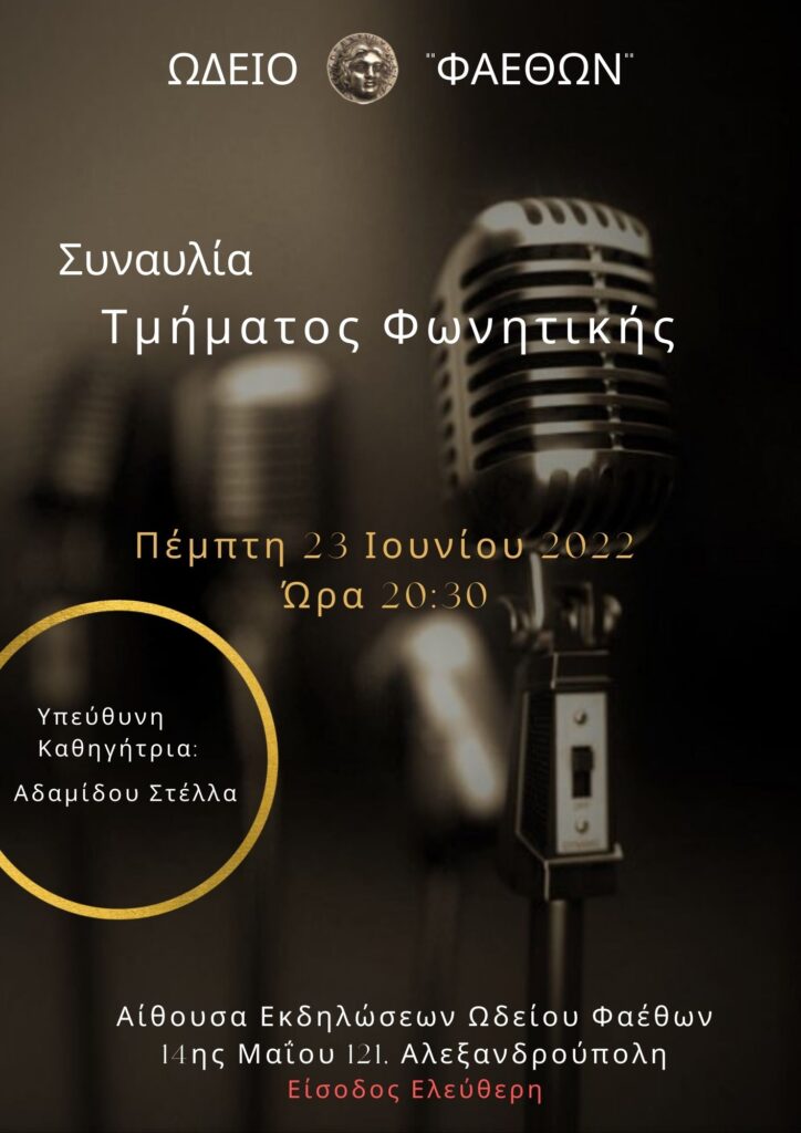 📍 Αίθουσα Εκδηλώσεων Ωδείου Φαέθων