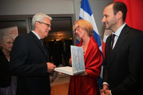 Κατα τον εορτασμό της αυστριακής εθνικής επετείου που έλαβε χώρα στην Αθήνα τον περασμένο μήνα, ο Πρόεδρος του Συλλόγου Μουσικών Εκπαιδευτικών Αν. Μακεδονίας – Θράκης, καθηγητής του Πανεπιστημίου Ιωαννίνων, Δρ Αθανάσιος Τρικούπης, πρόσφερε στην πρέσβειρα της Αυστρίας στην Ελλάδα, Gerda Vogl, την αγγλική έκδοση του βιβλίου «Μουσουργοί της Θράκης» με ιδιόχειρη αφιέρωση σε ένδειξη τιμής και ευγνωμοσύνης για το ιδιαίτερο ενδιαφέρον της πρέσβειρας όσον αφορά την ελληνοαυστριακή πολιτισμική συνεργασία στην περιφέρεια μας.