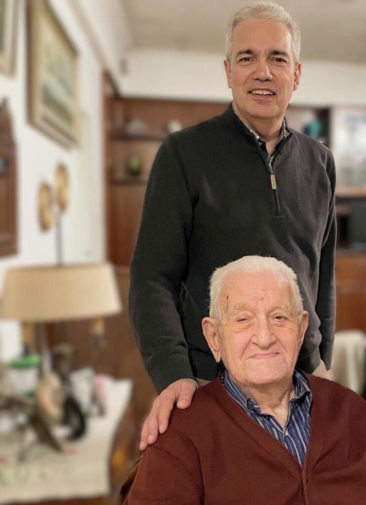 Στη φωτογραφία, απαθανατίζεται ο δάσκαλος σε μία από τις τελευταίες συναντήσεις που είχε με τον μαθητή του και ιδρυτή του Ωδείου, Θανάση Τρικούπη, στις 12 Απριλίου 2025.